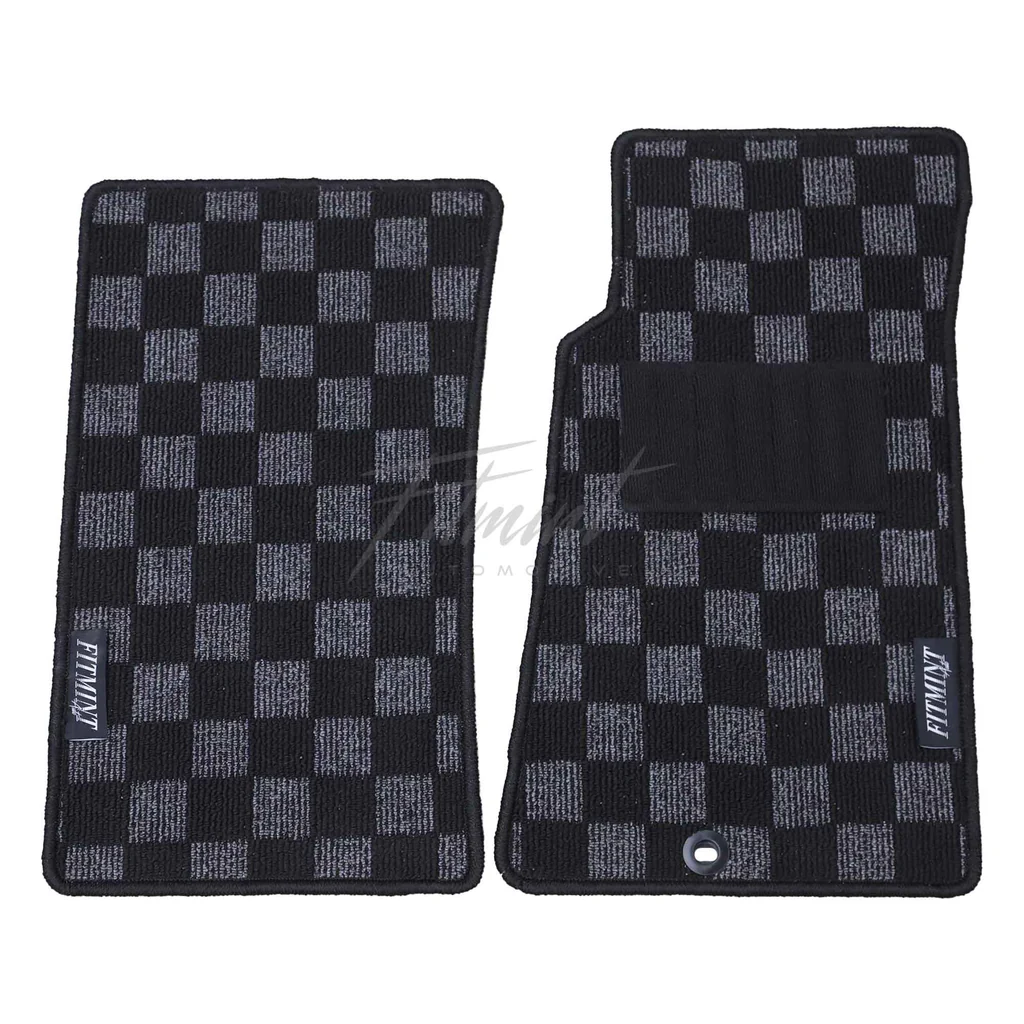 Heavy-duty, dense-pile carpets featuring a subtle, retro JDM chequered pattern.